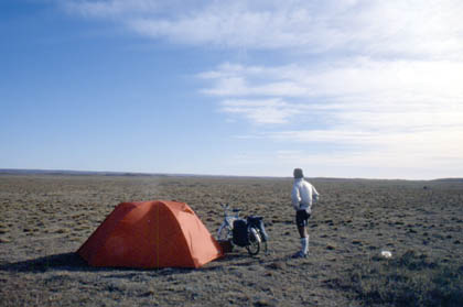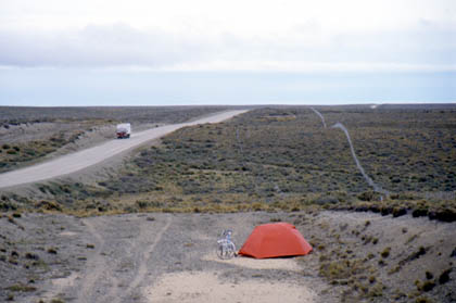 チリ フェゴ島からマゼラン海峡を渡って再び南米大陸本土上陸。 ![]() フェリーを降りて日没まで走った。これからはまた、長いアルゼンチンのパンパの走行が始まる。私の気持ちは既にブエノスアイレスへと移っていた。夕焼けを見ながら走り、そして、いつものようにテントを張った。