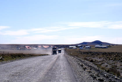 チリ パンパの中からチリ・アルゼンチンの国境が見えた。 ![]()