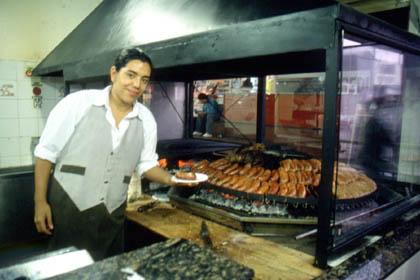 アルゼンチン 首都ブエノスアイレスの様子。 ![]() ブエノスアイレスでは自転車にも乗っていたが、地下鉄もあったので大いに利用した。最寄りの駅には小さな食堂やレストランがあり、ここで安い食事を立ち食いするのも楽しみの一つとなっていた。さすがに立ち食いそばはなかったが、立ち食いステーキや立ち食いフランクフルトとでも言うような牛肉類にむしゃぶりつくと、 「日本では絶対にできない贅沢だ・・・。」 私は悔いのないように食べ歩いた。