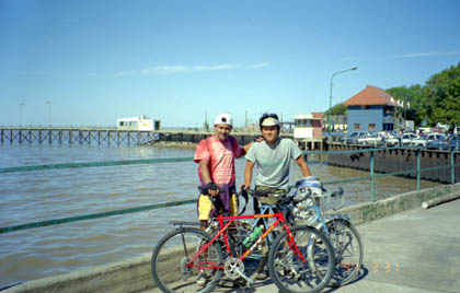 3月30日から4月5日までの約1週間は、ブエノスアイレスのユースホステルに滞在した。首都に着くとやらなければならない作業は山のようにある。洗濯、ブラジルのビザ取得、雑記まとめ、現像に出したポジフィルムのキャプション書き等々。1週間では短いくらいのステイだったが、物価高のアルゼンチンだったのでできるだけ早く雑用を終わらせて、ウルグアイへと出国したかった。 ユースホステルでは色々な出会いがあった。イタリア人旅行者のファビオや、隣国ウルグアイのエルネスト。更にはシンガポール人の旅行者。ユースで作業をしていると、暇な旅行者が誰かどうか話しかけてくれるのが楽しかった。シンガポールの旅行者はボリビアのビザが取れなかったと嘆き、イタリア人のファビオは写真好きで、私のパタゴニアの写真を見ては、唸りながら、 「んー、凄い。いいよ、いいなあ。」 などと言って絶賛し、私に握手をも求めて来るのだった。ユース内で作業をしているとどうしても人と話が始まってしまうので、 「これではいかん。」 と、市内の喫茶店やマクドナルドに入ってまとめ作業を行う日もあった。 ある日、ユースホステルで作業をしていると、以前に市内で出会った自転車好きのオスカルという青年が訪ねて来てくれた。滞在先の住所を渡しておいたのだが、まさか本当に訪ねてくれるなんて思ってはいなかった。作業中だったが、せっかく来てくれたので、早速彼とブエノスアイレス郊外を走りに行くことになった。