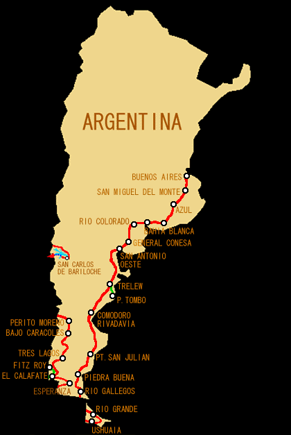 アルゼンチン走行 1993/12/17〜1994/4/21 走行距離 約4593km ![]() |