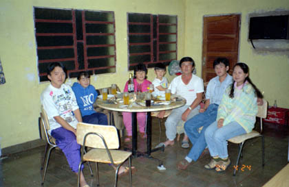 パラグアイ 広大な畑が広がっていたピラポ。 ![]() 機械類も導入されたのはここ12年ほどの間だと言う。電気が来たのも調度それくらいというから、厳しい生活事情の中を生き抜いてこられたのだろう。高橋さんは、 「今夜はどこに泊まるの?」 と聞いたので、私は、 「知人の紹介で、実は園田さんと言う方を訪ねてきたのですが。」 そう言うと、 「園田さんは今留守だから、良かったら家に泊まればいいわよ。」 そう言ってくれた。私は遠慮無く、高橋さんの好意に甘えさせてもらうことにした。 高橋さん宅は6人家族。長男の健郎君は銀行勤め、長女のこずえさんは地元ピラポの農業協同組合に。次女夏美さんと三女のちあきさんは学校通い。皆こちらで育った日系ニ世。日本語もスペイン語も上手に話した。 高橋さんはこれまたおいしい夕食を出してくれた。豆腐に漬物、それにうどん。びっくりしたのはなんと塩辛。日本を出てから2年以上は確実に食べていないものはたくさんあるが、このとき食べた塩辛もその中の一品だ。口の中で広がるあの独特のしょっぱさ。なんとうまかったことか。忘れられない。 高橋さんのお父さんも夕食には一緒した。しかし残念なことにお父さんは転倒して頭を打ったのが原因で、今は自由の効かない体になってしまったのだと言う。子供たちがお父さんの面倒を見てあげているのだと言った。 夕食が終わり、健郎君が、 「皆でカラオケに行きましょう」 と誘ってくれた。 「え、ピラポにもカラオケが?」 「はい、『フジ』って名前のカラオケがあるんですよ。」 カラオケは車に乗ってすぐの所にあった。若い日系の方と、ちょっと怪しいきれいな女性がそこにいた。