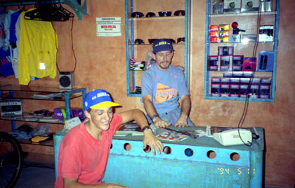 ブラジル 「DAY BIKE DAY」と言う名の自転車屋さんで。 ![]() 「デイバイクデイ」という名前に惹かれた。ここの店主の名はルーカス氏。メカニック担当はエジーさん。もう一人の店員はボブ。ここで部品交換や新しいパーツの購入をすることに決めた。とてもアットホームで、気さくなルーカス氏の対応に好感を持てた。 「良かったら、ここで整備や掃除もしていけば?」 そんな言葉に甘えて、私は飛脚号の整備や掃除も行うことにした。メカニック担当のエジーさんの指導を受けながら部品交換。ここで丸2日間、飛脚号の整備などを行うことが出来た。