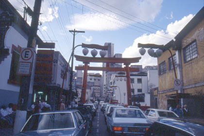 ブラジル 東洋人街にはこんな鳥居も・・・。 ![]() リベルタージ地区には何軒かの日本食レストランや食堂があった。私が何回も足を運んだのはこけし食堂。カツ丼に天ぷら定食、巻き寿司に刺身定食。目の前に出された食事をまず目で味わい、鼻で味わい、そしてパクリ、パクリとゆっくりと味わって食べた。 食堂で忙しく注文取りに追われる店員に、刺身定食と納豆を単品で注文。しばらくして、赤身のマグロが盛られた皿が出てきた。 「うわー。」 わさび醤油にマグロの刺身。白いご飯と味噌汁があればもう涙もの。わさびに涙しているのか、感動して涙が出そうになるのか分からないくらいだった。久々の日本食は、もうやめられない。 「やはり日本人の食生活というのは最高だ。」 とまで思ってしまった。ご飯のお代わりをし、大好きな納豆と食べればこれまた、 「うまいー・・・」 納豆を食べたのはいつだろう。確かペルーのリマ以来だろうか。それは日本では決して味わうことのない、究極の美味さだった。 多少高い値段にも目をつむり、2年振りの日本食三昧を満喫した。日本の食生活から2年も離れてみると、日本食はこんなにも美味しくてハイクオリティーな味だったのだと、変に感心してしまった。 リベルタージで宿泊したホテル池田は高かった。1泊10ドル。安くて有名な旅行者専用の宿もあったのだが、こちらの方はなぜか過去に4回も強盗に入られていると聞いていたので、もしもの場合を考えて、普通の、高めの安心宿に投宿した。 ホテル池田ではいつもの雑記まとめを行い、写真の現像も行った。スライドなどの整理をしていると、バイクで旅をしている山中さんたちが焼き立てのパンを袋にいっぱい入れて遊びにやって来てくれた。彼らも世界一周中と言うことで話題も合い、お互いに旅の記録等も見せ合い、情報交換などもして、我々はおおいに盛り上がった。