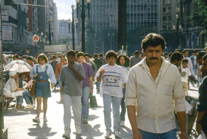 高層ビルに高層マンション、縦横に立体交差する道路網。バスに乗用車にタクシーと、車はひっきりなしに走りまわっている。街の地下鉄に足を運べば、新聞雑誌片手のサラリーマンが忙しそうに歩いている。想像した以上にサンパウロの町は大都会。南米一の近代都市はとにかくでかい。地図を持たずにホテルからどこかへ買い物に出掛けて行ったとしたら、同じように戻ってこれるかどうか疑問でもある。