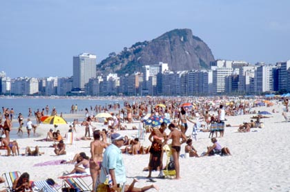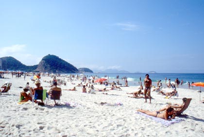 ブラジル 海岸には有名な岩山ポンジアスーカも見える。 ![]() リオデジャネイロ観光に私はバスを使った。公共の交通機関の移動に慣れていない私は、どのバスに乗れば良いのか分からなかったので、地元の人に聞くと親切に教えてくれた。 バスに乗ると中には車掌がおり、 「コパカバーナに行きたい。」 と告げると、 「分かった。」 とうなずいた。しばらくすると、その車掌は、 「あれが動物園だ。」 と教えてくれた。またしばらくして、 「これがサッカーの○○チームの練習場だ。」 そして、 「ここを真っ直ぐ言ったらイパネマ海岸があるんだ。」 と、いつのまにか観光案内人のように親切に色々と教えてくれていた。こんな人に出会うと、リオでの滞在も安心できる。 真っ白な賑やかな浜辺は、有名なコパカバーナ海岸。そして向こうにイパネマ海岸。その賑やかな光景をカメラに収めた。 「リオのカーニバルはきっと凄いのだろうな。」 賑やかな海岸を歩きながらそんなことを感じていた。
