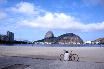 ブラジル リオの海岸。自転車少年とポンジアスーカ。
