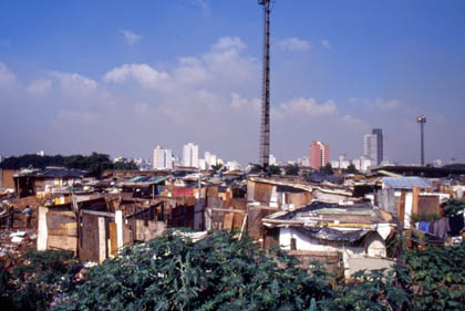 ブラジル サンパウロ郊外に立ち並ぶバラックの家。