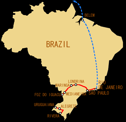 ブラジル走行 1994/4/13〜1994/4/18(362km) 1994/4/27〜1994/5/25(1601km) 走行距離 約1963km |
