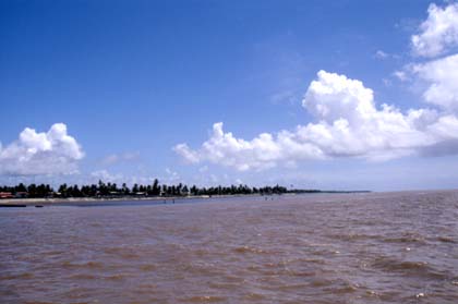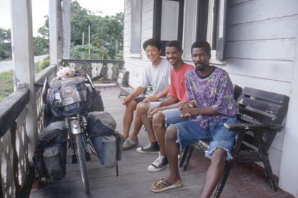 スリナム ガイアナ出発の日、出国の準備をしていると、フレンドリーなスリナム人がコーヒーをおごってくれた。 ![]() 1994年、6月9日。朝の6時、スリナムの出国作業を行った。ブッキングをし、再び出国印を押してもらう。今日は間違い無くガイアナに入国だ。スリナムの出国担当の係官も、自転車の私のことを良く覚えており、 「お、チャイニ、今度は大丈夫か。」 と笑って言った。もちろん私は、 「バッチリです。もう、この国に戻ってくることはないでしょうね。」 そう告げた。 混雑する船の上で、私は満足気にコーランタイン川を眺めていた。戻ってくることはないスリナム。でも、またいつかこの国を再び訪れてみたい。そこにはまた、きっと違ったスリナムの人々の姿を見ることが出きるかもしれないからだ。 ガイアナのイミグレーションは目の前にあった。以前にも見た同じボロ小屋の「出入国管理事務所」だ。 コーランタイン川から見た空はとても爽やかに晴れ渡り、透き通るような風景が目の前に広がっていた。 「よし、いざ33カ国目ガイアナ入国だ。」 私の心もまた、コーランタイン川から見る空のように、どこまでも晴れ渡っているようなそんな清々しい気分だった。
