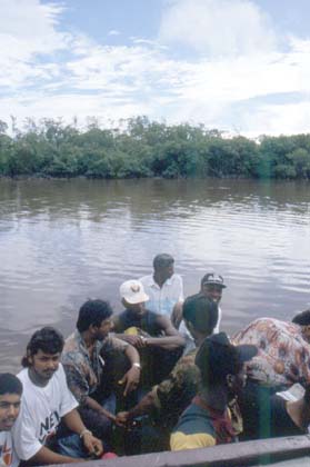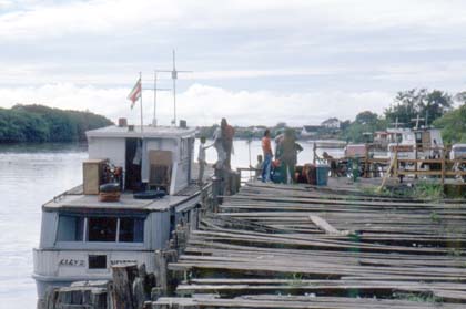 スリナム 小さな船。たくさんの乗客はこの船に乗せられてガイアナに向かう。