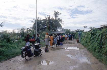スリナム 暑いのに、気持ち良さそうに小鳥たちは鳴いていた。 ![]() 国境の町、ニウニッケリーの手前20kmまでにやってくると、道はダートに変 わる。雨も降りだしグチャグチャ。午後の5時半頃だろうか、ニウニッケリーの町に到着した。