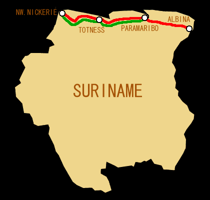 スリナム走行 1994/5/29〜1994/6/9 走行距離 約504km |