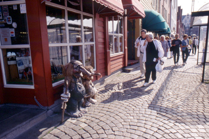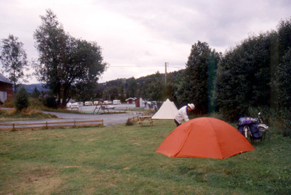 ノルウェー おとぎの国にでも舞い込んでしまったよう。 ここベルゲンで、アイスランド行きの日程が決まった。8月29日から9月12日の約2週間。あの美しき島を一周するのだ。 「よし、またオスロまで気合いを入れて走るか。」 北中南米を出たときから考えてはいたが、このベルゲンの街で、2年半使ったダンロップの赤いテントにさようならを告げ、新しいテントを購入する事にした。ベルゲンのアウトドアショップにはアメリカ製の最新のテントも並んでおり、私はノースフェイスの「MTN−24」というテントを使う事にした。重さは今までの物と比べると数百グラム重い。代わりに見た目のデザインが良く、居住性もいい(広い)。設営時間や手間は以前のダンロップに比べると少し落ちる。それでも私はこのテントはいけるとみた。帰国までこのテントでやりくりしよう、そう考えながら選んだ贅沢な買い物だった。価格はUS700ドルくらい。 北欧では「タックスフリーシステム」と言うのがあって、高い買い物をすると税金は戻ってくると言う事だったので、少しは安く買う事が出来た。買った品は国内で使ってはいけないらしく、海外に持ち出す製品にのみ適用されると言うものだった。 店では5パーセントのディスカウント。更にアイスランドへ出国するときに、空港で12パーセントの税金が戻って来ると言う。つまり価格から17パーセントも低い値でテント購入できる事になる。 日本円では6万円近い大出費。大きな買い物だが、これを帰国までの約3年半で償却予定だから、1日当たりのテント使用料を割り出すと約46円程度になる。旅も長くなるにつれ私の考え方はますますせこくなっていく。情けない。 しかしながらも得をした気分で喜んだ。新しいノースフェイスのテントを後ろのキャリアに括り付けて、朝方スライドの現像をお願いした写真屋に向かった。ものの5分位だったので、自転車にカギはかけなかった。店の前に立てかけるように自転車を置いただけ。店のあった場所と言うのは、ベルゲンでも最も賑やかな一番の繁華街だったかもしれない・・・。