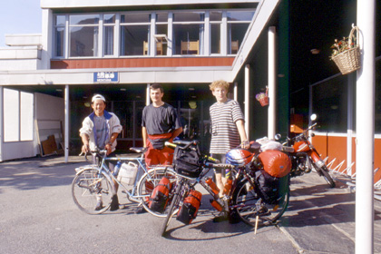 ノルウェー 「やめてくれー盗るなー!」「だったら盗んだりするんじゃない!」 今では笑って済む盗難事件なのかもしれないが、もしあそこで10秒遅れていたら、あるいは、あの親切なお姉さんが見ていてくれず、そして教えてもくれなかったら・・・そう考えると、恐ろしい。高いテントと自転車飛脚号とはさようなら・・・。被害金額はおそらく30万円以上。それにその後の私の旅はどうなっていただろうか。新しい自転車もテントもアイスランド行きも一瞬にして消え去っていた事だろう。 「飛脚号と北欧でさようなら。」 なんて記事が私の田舎の信濃毎日新聞に綴られる事になるじゃないか。世界一周のバイクの人もフランスのパリで盗難に遭ったと言っていたし、これからヨーロッパを走ると言うのに、北欧でこんな事ではどうしよう。周囲の自転車を良く見れば、みんながっちりとカギがかけられている。 「北欧に住んでいても、やっぱり人間は人間だよな。」 フィンランドのユースで出会った、オーストラリア人のジプシーの話や、南部の治安の悪さの話を思い出した。今までの調子で行ったら、きっとどこかでまたやられてしまう。欧州も中南米のように気を引き締めねばならないな。 ユースに帰ってから、飛脚号の整備を始めた。すると、ドイツ人サイクリストがやってきて、 「何か手伝おうか?」 と言ってくれた。気の利くジャーマンだ。 「ちょうど終わった所だからいいよ、ダンケ。」