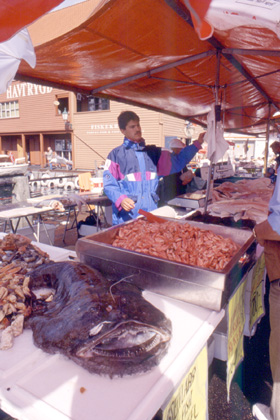 ノルウェー 大量の海老に大きなチョウチンアンコウ? 観光は少しにして、写真の現像やアイスランド行きの件を先に済ませてしまおうと、インフォメーションのお姉さんに船会社のオフィスの場所を聞いて行く。 少し古い、がっちりとしたお城のような建物の中にアイスランド行きの船会社があり、早速船便を予約する事にした。 「あの、アイスランド行きのチケットをお願いしたいんですが。」 「アイスランドに行って、またこのベルゲンの港に戻ってくるのですか。」 「ええ、出来れば向こうに2週間くらい滞在したいのですが。」 そう聞くと、 「確かに明日、便はありますが、ここへは戻らずにデンマークに行ってしまいますよ。」 「あ、そうなんですか?」 「それに、明日いっぱいで今年はアイスランド行きの便は最後です。もう少し前だったらアイスランドからベルゲンにもどってくる船もありましたけど・・・。」 それは困ったぞ。選択ルートは間違ってはいなかった。しかし、シーズンもオフなら仕方がないか。そう言えば、同じ北欧でもアイスランドはかなり北の離島だ。夏の観光のシーズンは終えてしまったのかもしれない。何やら落ち込み、考え込んでしまう私を見てか、オフィスの女性は、 「明日、船で行って、帰りは飛行機って言うのはどう?」 と他の方法を提案してくれたが、その場合だとベルゲンに戻らずに、オスロへと飛んでしまう。それに明日の船便ではフェリーは首都レイキャビクとは反対側の港に着いてしまう。これではバスにでも乗らないと一周出来ない。 「ちょっと時間をもらえます?」 私はその場を立ち去り、今度はスカンジナビア航空に行き、オスロからアイスランドへ行く空の便の確認をした。ベルゲンからは飛行機はないらしく、アイスランドへ行くにはオスロを起点にしなくてはならないようだ。値段を聞けば、飛行機とフェリーを使うよりもはるかに安い価格。ちょうどピークを越えたのでチケットの値段が下がったらしい。それならと、私はオスロから空路でアイスランドに向かう事にした。