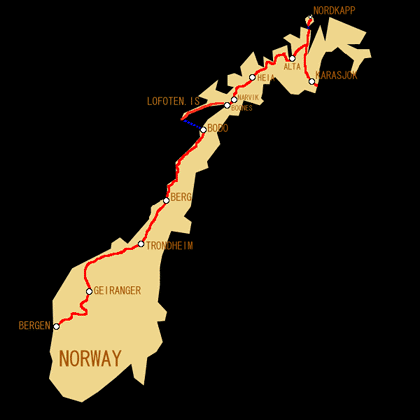 ノルウェー走行 1994/7/19〜1994/8/29 及び 1994/9/12〜1994/9/19 走行距離 約4012km ![]() |