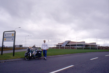 8月29日月曜日。ユースでの食事はベルゲンのときと同じようにバイキング形式だった。私は意気揚々と食堂に駆け込んで、気合いを入れて食べ始めた。 食事の質はと言えば決して豊かとは言えないが、その量は半端ではなかった。パン、ハム、チーズ、コーヒーに牛乳、コーンフレークにジュース、かなりもたれるコーンビーフ、ピクルス、魚のケチャップ煮(かなり味が濃い)、ポテトサラダ、ジャム、バター。並べられていた料理はそんなところ。食事は質よりも量と決めていた当時の私にとっては、それは天国のような朝だった。牛のように食い溜めはできないが、とにかく朝から食べまくった。 昨日相部屋だった中国の西安の親子は、 「ここからデンマークに行くんですよ。」 と言い残し去って行った。私もあんな風に親孝行ができれば・・・そんな事を考えながら彼らを見送っていた。 朝食を済ませ、朝一でオスロ大使館に足を運んだ。実家から送られた友人や知人の手紙を受け取るためだった。大使館の領事部を訪ねると、 「へ〜自転車の旅ですか。南米はどうでした?これからどちらへ行かれるんですか。」 とても親しげに色々と聞いてきた。更に、 「少し新聞社にでも宣伝していったらどうです?」 と言った事も勧めてくれたが、時間も無かったので遠慮した。私はノルウェーに入国して以来ずっと気になっていた天気の事を聞いてみた。すると、 「ノルウェーと言う国はいつもこうなんですよ。」 そうあっさり。私が走ったときだけでなくいつもこう言う天気ならば、あれだけ雨に降られてもしょうがないと納得もいく。 空港へ向けて走り出したのは午前10時。何回も往復していたのですっかり見慣れた道になっていた。市内から空港への道のりは僅か40分。 日本を出発してからいつも自転車の組み立てと分解をその都度繰り返し行ってきたが、ベネズエラ出国の時から分解して大きなバックに入れて空輸する、いわゆる「輪行」と言う作業は行っておらず、そのまま自転車を運んでもらってきた。 欧州では自転車の為の運賃を徴収される回数が少なく、非常に助かっていたが、アイスランドも同様だった。 出国ロビーではベルゲンで買ったテントのタックスを受け取った。これが700クローネ。何だかとても金持ちになったような気分になる。 自転車の分解作業が無いだけで本当に楽だった。その分持ち込みを増やしてしまったので、機内では大きな荷物を持ち歩いて少しひんしゅく。 午後1時05分。飛脚号と私を乗せた飛行機は、サイクリストパラダイス、アイスランドに向けて飛び立った。私が泣かされた大小様々に入り組んだフィヨルドが、まるで模型のように小さく眼下に広がって見える。思い出してみればノルウェーは過酷な走行だった・・・。 「あれはソグネフィヨルドか?あれは何湖だろう?」 上から見るとどうってことはない模型のようなフィヨルドも、人力で走るとなると、とてつもない大きさだった。 「あそこを走ってきたんだ、あの山々を越えて来たのか。」 ノルウェーの陸地が見えなくなるまで、ずっとずっと窓の外を眺めた。 空を眺める事1時間。飛行機の窓から眼下に目をやると、大きな雪の塊が見えた。まるで氷の大地とでも言うような、広い白い大地だ。上空から見るその白い大地は眩しく、目が痛くなるほどだった。 「ここがアイスランドか・・・」 雪の塊の周囲には小さく道が走っている。 「あの道を走るんだ・・・」 カリブ海のドミニカで出会ったオランダ人サイクリスト、ゴンタ氏が言ってくれた言葉が思い出される。 「アイスランドこそ、サイクリストパラダイスだよ。」 島に近づくに連れ、胸がわくわくするのがよく分かった。 「いよいよ待望のアイスランドだ。」 飛行機はアイスランドの首都レイキャビクから南西約45km地点にある、ケフラビックの空港に着陸した。ノルウェーよりもやはり空気は冷たく感じる。イミグレーションでは、 「何日の滞在ですか?」 「2週間です。」 そんな簡単なやり取りだけで、 「ポン」 と係官はスタンプを押してくれた。特に問題なく入国。税関のチェックもほとんど無かった。