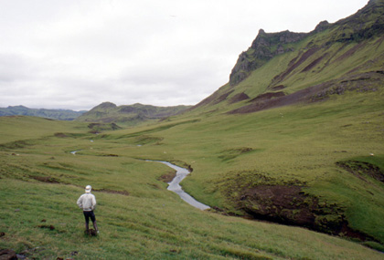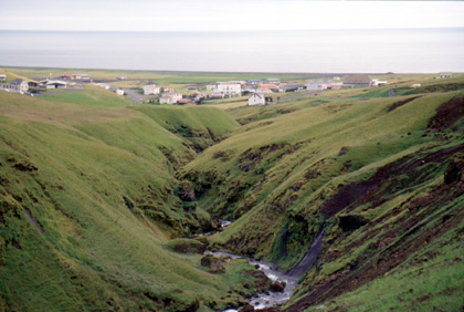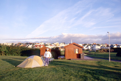 アイスランド どこかパタゴニアで見た風景に似ている?いや、ここはアイスランドだ。 ![]() 島を一周するべくレイキャビク方面を走っていると、前方にコウパボギュルの街並みが見えてきた。この街のはずれにある公園のようなところがそのままキャンプ場になっていたので、初日はここに泊まる事にした。1泊約520円。キャンプ場の管理人と早速話をする。その昔ノルウェー人がこの島に移住したと言うが、その管理人にノルウェー人っぽい雰囲気は感じられなかった。彼の言うには今日から調度旅行のオフシーズンで、バスの運行本数も少なくなり、航空運賃は安くなってツーリストも少なくなるのだと言った。心配の種の風のことを聞けば、時期的には今はそれほどでもないよと言った。