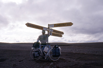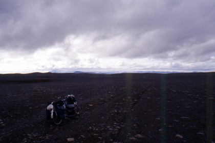 アイスランド 天気の悪いのがやはり気になる。 ![]() この日は後方からの風の助けもあり、アクレイリの街には午後の3時に着いてしまった。ここでルート選択に悩んだ。島の周遊道路である1号線を走ってレイキャビクに向かうか、それともF82号線とF28号線を走って島の中央部縦断を行うか・・・。1号線はアスファルト道が多く街も多い。しかし、距離は長い。残された日数で走り切るのはどうも難しそう。距離的には島を縦断するのが最も早い気がする。 中央部は無人のダートが延々と続いているので、こちらの方が走りがいはあるだろう。しかし天候はどうなるか予想がつかない。無難に周遊道路を走ってどこかでバスにでも乗るか。コインでも投げてどちらにしようか決めたいくらいだった。中央縦断か、周遊道路か・・・。しかしやはり、ここは冒険をしてみようと、中央部を走ってみる事に決めた。もしかしたらアイスランドの変わった景色に出会えるかもしれない。 私はアクレイリから一気にアイスランドの屋根のような中央部を目指し、南下していく事にした。