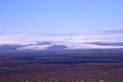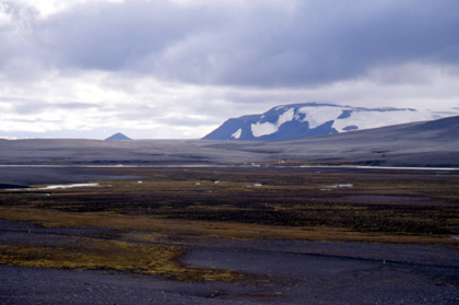 アイスランド 遠く見える山の写真を撮ってみた。 ![]() 氷河の溶けた水が作る、5m位の幅の川があった。これを裸足で渡ろうかとも考えたが、さすがに寒いのでそんな勇気はなく、パニアバックに入っていたプラスチックの買い物袋を靴下の上に履き、これで靴を履いて川を渡った。靴はすでに濡れていたが、再び濡れ、中には少し水も入り込んだ。靴下も少し濡れてしまった。気温は7度ほど。水は結構冷たい。こんなことなら最初から靴を脱いで渡ればよかった。失敗。 この日目標としていた地点に辿り付き、ここでテント。非難小屋はあったがなぜか閉まっていたので使えなかった。