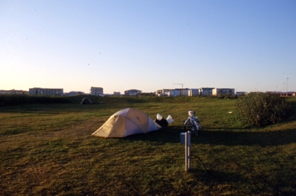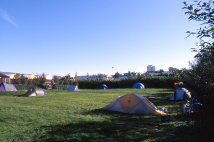 アイスランド たくさんのテントが張られていたレイキャビクのキャンプ場。 ![]() 翌日9月11日。出国1日前。朝からのんびりと支度をして、レイキャビク市内の様子を見学に出掛けた。快晴の空の下をのんびりと飛脚号と走る。日曜の朝は人々もゆっくりとした1日を過ごしていた。 市内では個人的にショッキングな出来事があった。荷物を付けた自転車にまたがって、信号待ちをしていた。歩道の信号待ちである。私の前には4人ほどの家族がやはり信号を待っていた。その家族のうちの一人の子供が私の方をじっと見ていた。可愛らしい子なのでニコっと笑って見せると、その男の子は、 「イーっだ」 と、憎らしいアッカンベーを私にするではないか。そしてその後何もなかったように家族と歩き去って行った。 「このガキンチョ!コツン!」 とゲンコツをくれてやろうかと思ったが辞めた。私の格好が余程ひどかったのか、それとも東洋人の細い目を嫌に思ったのか。思えば東アジアからは遠きアイスランド。彼から見たら私はヘンテコな乗り物に乗った宇宙人のように見えたのかもしれない。
