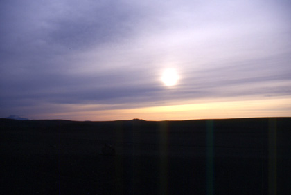 アイスランド 誰もいない寒空で夕日をじっと見詰めていた。 ![]() アイスランドの屋根とも言うような標高1000m程のところをずっと走ってきたが、その大部分はやはり不毛の地だった。1日も誰にも会わずに走っていた日などはとりわけ長く感じた。しかし、予想通りの景色に出会うことができ、まずまずの走行。苦しみながらも、こんな所を走れてよかった・・・と納得した。