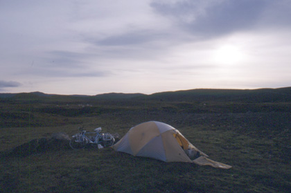 アイスランド フワフワとしたコケの上にテントを張らせてもらう。 ![]() 走行の最終日は追い風にも救われて168kmを走破。何とかレイキャビクに着く事ができた。これで12日の早朝の便に乗れる事になる。やれやれ。 「やはりアイスランド1周を2週間でなんて、とんでもない話だった。」 アイスランド中央部の不毛地帯縦断も終わりに近づいた頃、ようやく見えた一軒のガソリンスタンドで私はチョコレートを買ってかじりついた。 「うまい・・・」 この甘味が何とも言えない。たかが2、3日の寒空の走行だったが、予想以上にカロリーを消費したようで、久々に食べるチョコレートが舌の上でとろけていた。 レイキャビクに向かう途中ではフランス人のカップルサイクリストに出会った。私は自分が夏のサイクリスト最終便かと思っていた。しかし、まだまだ冬のような夏のアイスランドを走っているサイクリストは多そう。 午前中に張り切ったので、レイキャビクのキャンプ場にはまだ明るいうちの、7時には到着することができた。 「やっと着いたか。」 私はアイスランド1周を祝うべく、牛肉とピーマン、玉ねぎで炒め物を作り、更にビールでアイスランド1周を祝って乾杯した。 「走れてよかった。自然が良かった。でも、もっともっと長い期間走りたかった。」 この日夕食は確かに腹いっぱい食べた。しかしアイスランド走行に関して言えば、腹8分目と言った感じだ。ビール片手に走行の愚痴を言いたくなってしまう。でも、もっと走りたいと言った印象を残しておいた方がいいのかもしれない。またこの島に来るときのために。