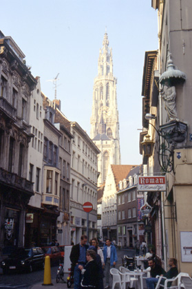 ベルギー ホーフストラーテンの街中で見た教会。 ホーフストラーテンから更に南へ走って行く。森の中を抜け、目指したのはアントワープ。私が小さい頃に見たフランダースの犬。あのアニメーションの舞台にもなったお馴染みの街。 アントワープ市内に入り、真っ先にノートルダム寺院へと行ってみたかった。しかし細かい市街地図を持っていなかったので、自分のいる現在地がどうもはっきりと分からない。どこをどう行ってよいのやら。大きな街では地図が無ければお手上げなのだ。私は立ち止まって大雑把なガイドブックの地図を見ていた。すると、 「・・・・」 と、近くを通りかかった女性が何語か分からないが声をかけてくれた。60歳過ぎのその女性は、私の目を見て何か聞いている様子だった。が、何を話してくれているのか理解できずに、私は、 「ノートルダム寺院へ行きたいんです・・・」 そう言うと女性は片言の英語で、寺院への行き方を教えてくれた。老婆の何気ない親切がとても印象的だった。 ノートルダム寺院は大きく立派な建物で、多くの観光客で賑わっていた。中には、あのネロ少年が見たいと言った絵も飾られていた。