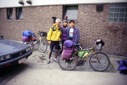 ベルギー 相部屋になった韓国のサイクリスト。左からキムさん、チャングさん。 ![]() 翌朝、オランダに向かうと言うチャングさんたちと出発時に記念撮影。また日本か韓国で会おう。そう言ってお互い無事に走れることを祈り別れた。どこか清々しい韓国人青年二人。将来とても有望と言う感じがした。