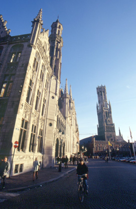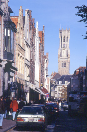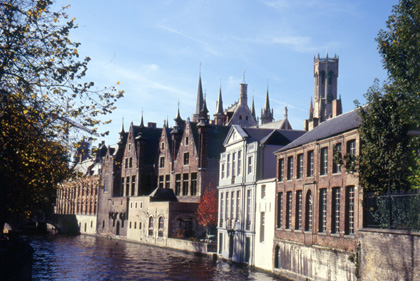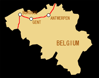 ベルギー ゲンテからブルージュに向かう道。点線で区切られた赤い部分が自転車専用道。 ![]() ゲントからブルージュへの道のりは50km程。午後一番には街に到着。 ガイドブックを見れば「天井の無い美術館」と書かれてあった。以前どこかのユースホステルで一緒になったスペイン人も、 「ブルージュ、あの街はベルギーのベネチアだよ。」 とも言っていた。 そんなブルージュの街中を走れば、本当にため息の出るような風景が目の前に広がった。運河に教会、古い家のたたずまい・・・。野外美術館とはよく表現したものだと感心してしまう。昔のヨーロッパの姿は、このブルージュみたいだったのかもしれないと考えた。 ユースホステルに投宿を決め、今度は荷物の付いていない飛脚号とブルージュの街中を見て歩いた。 「こんな美しい街を歩いていると言うのに、ひとりとはなあ・・・」 余りにきれい過ぎるので一人で見るのは惜しいくらい。