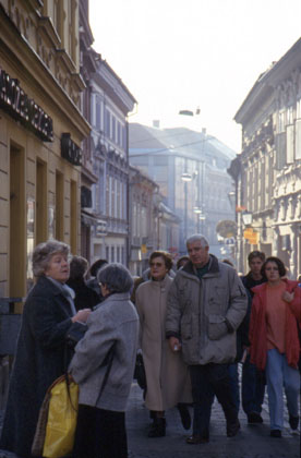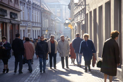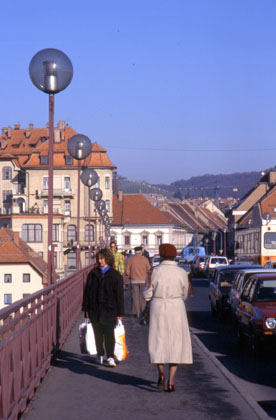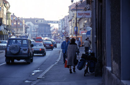 スロベニア ドラバ川沿いにテントを張って一夜を過ごした。 ![]() 11月30日。ノルウェー走行中に発見した、5リットルの水タンクに開いていた穴が、いつの間にか大きくなっており、この日の朝方、タンクから大量の水が漏れ空っぽになってしまっていた。早く新しいのを買うか日本から送ってもらうかしないといけない。朝食は水なしで、パンにトマトにハムをはさみ、マヨネーズをかけて朝食とした。 少し寒いと感じたこの日の気温は3度。走るに支障はない気温。30kmほどドラバ川沿いを走って行くと、マリボルと言う大き目の街に到着した。賑わいを見せる街の様子はどこか西側と違っていた。多くの人が歩いており、かつて見た派手な看板のイルミネーションなどが少なく、時代を遡ったようにも感じるのだ。これと言う決定的な違いはないが、やはり街の様子はかつての欧州とは違っていたのだ。それらの違いを観察しながら、自転車を降りてゆっくりと見学するのがとても愉快だった。私はマリボルの街の様子をカメラに収めた。