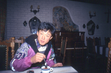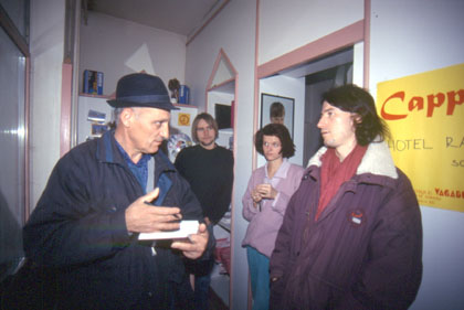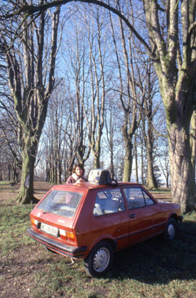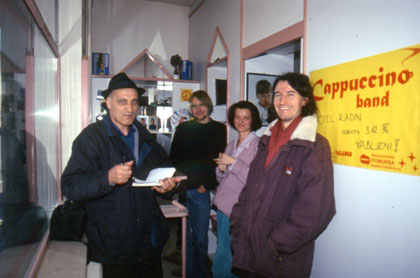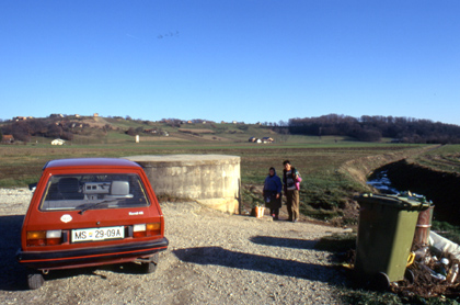 スロベニア デュラシュさん宅。昔から旅行が好きだったという彼の家にはビデオがずらりと並ぶ。アルバムには二人の共産党員の証明書見たいなものが貼られていた。 ![]() 翌朝出発の準備をしていると、デュラシュさんは、 「なんだ、ヨシ、今日もう出発するのかい?今日僕らの村を案内しようと思ったのに。出発は明日にすればいいじゃないか。」 そう言われ、嬉しくなってしまい、 「え、本当に?いいんですか?」 などと言ってこの日、12月の1日も厄介になることになった。 デュラシュさんのユーゴ製の車に乗って、午前中から色々な所に移動。最初に連れて行かれたのはどうやら写真屋さん。あまりパッとしない店だが、現像所らしい。ここに偶然、デュラシュさんの知り合いの記者がおり、私の記事を載せたいと言ってきた。記者の方はどこかユーモアがあり、真剣に私の顔を見て質問をしてくるのだが、どこかとぼけた素振りを見せてくれるので、私も愉快な気分になってしまった。彼は、 「わたしゃ、日本人と話したのはこれが生まれて初めてだよ。」 そうも言っていた。とにかく喜ばれたようだった。