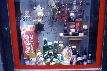 スロベニア その昔、西側の「コカコーラ」は旧ソ連崩壊前は東側の人々にとっては憧れだったそうだ。陳列の派手さはその名残だろうか。