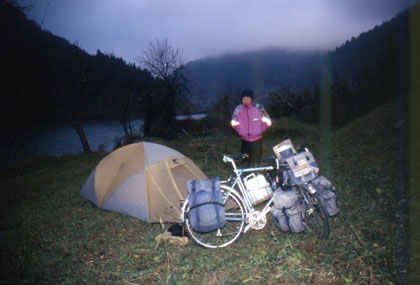 スロベニア 年代が遡った気もする。お洒落な街並みに見える。 ![]() 物価は安いと予測していたのに、意外にもスロベニアは高い。街の中心にあった普通のホテルの値段が70ドル。 「え?70ドル?」 ぶったまげてしまった。街の中心に1泊して、都会に住むスロベニア人の暮らし振りを見ていきたかったが、宿が高いのではしょうがない。街での滞在を諦め、飛脚号とともにオーストリア国境方面まで走ることにした。 「いつものようにどこかで野宿しよう・・・。」 そう決めた。