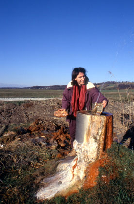 スロベニア こんな気持ちの悪い色のは飲めない・・・。 ![]() おばさんが汲んでいるビンをデュラシュさんがちょっと借りて、大きなタンクからチョロチョロと出ている水を少し飲んだ。そして私にもくれた。飲んでみると炭酸ソーダそのもの。ガスが入っており、着色料でも混ぜてしまえば、そのまま商品になりそうな「炭酸ジュース」だ。ちょっぴり甘い味もあるのでうまい。普通の湧き水と思ったのにびっくり。しかし余り飲みすぎても怖いと思ったので、二口くらいでやめといた。デュラシュさんは体にとても良いのだと言っていたが。それにしても自然に湧き出る炭酸水なんて、聞いた事も見たことも無かっただけにびっくり。