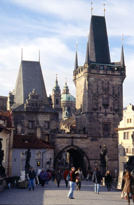 チェコ カレル橋。彫刻などがあるので飽きずに橋の上を歩く事ができる。