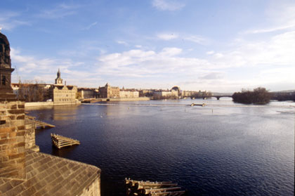 チェコ カレル橋から見たブルタバ川の流れ。