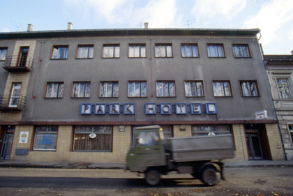 チェコ ここは公園なのか?どうやら墓地らしい。 ![]() 小雨の中、カッパを着込んで走っていた。西側にあったハイウェイは自転車など当然走れなかったが、チェコではなぜか走れた。と言うよりも一般の国道のような道をそのままハイウェイと指定しているのだ。トレーラーもトラックも引っ切り無しに走り、車が放つ泥で飛脚号も私も真っ黒。これではやってられない。とにかく参った。そんな道をひたすら北上していく。 この日はテレツェンという街まで走って走行を終えることにした。街にはこじんまりとした、それでいて今にも崩れ落ちそうなホテルがあったので、ここに泊まるべく値段を伺ってみた。すると、朝食付きで12ドルという値段。ここならいいだろうと投宿する事にした。