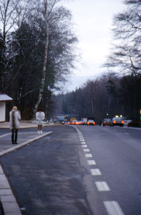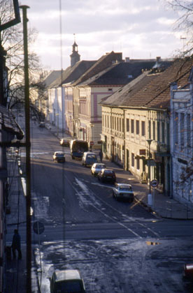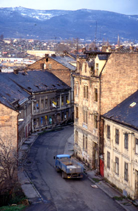 チェコ テプリツェのバス停で。 ![]() テプリツェの街から東ドイツ国境方面を眺めた。 「峠の山頂は雪だなあ。」 峠を越えなければドイツには行けない。私は雪の降る峠へ向けてペダルを踏み始めた。標高が上がるにつれ気温は下がっていった。峠道の途中では、この寒いのにミニスカートをはいて、派手な毛皮のコートをまとった女性が立っていた。 「随分と派手な女性だな。あれはきっと今チェコで流行のファッションなのかもしれないぞ。」 一人二人かと思ったその派手な衣装の女性たちは、あっちにもこっちにもと、その数は次第に増していった。見ていれば、走る車にウィンクをしてみたり、色目を使ったり。もしかしたら彼女たちは娼婦かもしれない。 「雪が舞う中で大変だなあ。」 道沿いに立っていたその女性の数は30人以上。私は見て見ぬ振りをしながら走り続けた。