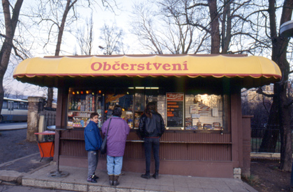 チェコ ジュースにホットドッグ、何でもありの店。なぜか中にいる店員の顔が見えなかったりする。