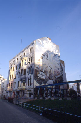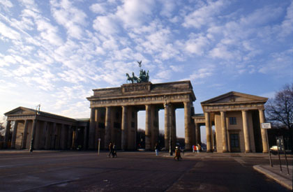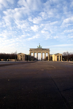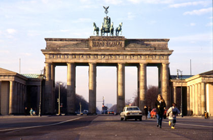 ドイツ 広い道と同じような形のビルの造りはチェコやキューバとも似ている。 ![]() 翌朝12月18日の日曜日。ベルリンを訪れてここを見なければいけないと、早速ベルリンの壁を見に出掛けた。今現在では撤去されてしまって壁はないが、ブランデンブルグ門や壁博物館などは歴史的遺産として残されている。 ユースホステルから自転車ですぐ近くの所に、ブランデンブルグ門がある。昔は通ることも近づくことも許されなかったという門だ。今日では団体のツアー客、個人客がカメラ片手に笑顔でパチパチとやっている。今はなき壁の跡を目の前にして、当時の様子を想像したら恐ろしく思えた。昔はもちろん今のような自由な往来はなく、壁を越えたら銃で「バン!」。そんな世界があったのだ。手元のガイドブックには「壁を越えようとして命を落とした者100名とも200名とも言われている」と書かれてあった。