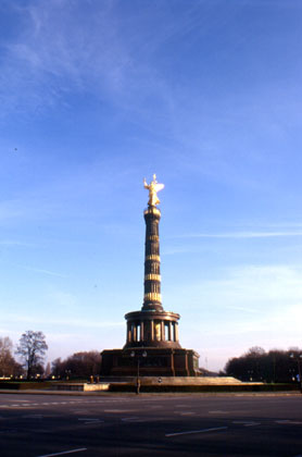 ドイツ 大きく壁に描かれアート。崩壊後の自由を描いているのだろうか。 ![]() 一通り見学が終わったので、今度はポーランド大使館の場所を確認すべく、ウンターデンリンボン通りと向かった。明日はポーランドのビザを取らなければならない。場所の確認だけを終え、その後も観光を続けた。このウンターデンリンボン通りと言うのは、その昔ヒトラーも行進したベルリン随一の繁華街だったそうだ。 「ここを、あのヒトラーが行進したのか・・・。」 天を突くように伸びる戦勝記念塔を見学し、その後は西側繁華街のツォー駅周辺、ネオンや宣伝物が目に眩しい地区を駆け抜けていった。