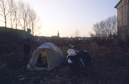 ドイツ ドレスデン過ぎで野宿。 ![]() 12月のこの時期、ドイツではかなり冷え込んでいた。朝方起きてみればテントのフライシートの内側はバリバリに凍っていた。 「ベルリンまではもうひといきだ。あそこまで行けば暖かいユースに泊まれるぞ。」 走りながら目にするのは東側独特の建築物。灰色や色あせた茶色で塗られた家々は、日本の家や、かつてのドイツでは考えられない地味さ。 「なぜ色を塗らないこういう建物なのか。」 どこか寂しげな建物を眺めながら、疑問を抱きながら走っていた。