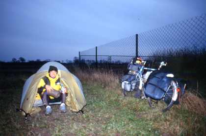ポーランド ホテル泊まりのあとの野宿。ここにはもう電気も机もない。 ![]() 翌日走り始めると、気持ちの悪いくらい生暖かい風が西から吹いてきた。追い風で助かるが、12月のポーランドはこんなにも暖かいのかと、少し不気味になる。気温計を見れば摂氏8〜9℃。 この日も退屈な、一直線に伸びるハイウェイを東へ走り続けた。何か前輪の様子がおかしい。と思ったら、フニャフニャとパンク。 「ついに来たぞ。97回目のパンクだ。」 パンク100回記念まではもうすぐだ。 「もう少しだ!もう3回でパンク100回目だぞ。」 こうなると私もアホでしかない・・・。 腹が減ったので、最寄のレストランに直行。今までは割りと通じたドイツ語がここでは通じなかった。国境から遠ざかっているせいなのか。ジェスチャーでのやり取りが続いた。