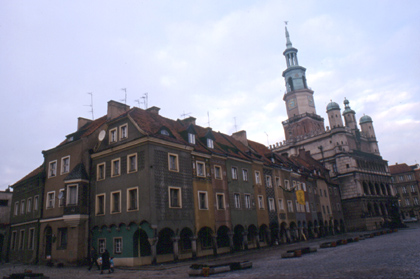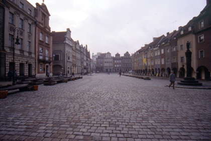ポーランド 小さなマーケットで野菜を売る人々。 ![]() この日目指したのはポズナニと言う大き目の街。ワルシャワとベルリンの中間に位置する街だ。古い歴史の街らしく、ガイドブックを見てみれば、「10世紀には一時ポーランド王国の首都でもあった。」と書かれている。街に着くと、古風な建物が目に入った。 薄暗くなり始めた午後の4時すぎ、街の中心に一軒のホテルを見つけた。造りからして高そうで、一歩引いてしまうような建物だ。 「ここは自転車野郎の泊まる所ではないな・・・。」 100ドルくらいするのかもしれない。いや、そこまではしないだろう。でも50ドルくらいはするのかな。いやもしかしたら意外に安かったりするのかもしれない。恐る恐るフロントに行って値段を聞いてみる。すると1泊20ドル。それもバス付き。安く見積もっても50ドルはすると思ったので、何だか急に泊まりたくなってしまった。 「でも、20ドルはやはり高いかな。」 ホテルを見上げながら少し悩んだ。しかし、ベルリンで現像したスライドまとめもしなければならない。それにユースホステルの多くは昼間の滞在に時間制限を設けていて、連泊しても午前10時以後は外に出なければならない場合が多い。だから今まで雑記書きはファーストフード店などで済ませていた事が多かった。しかし、このホテルはバス付き。しかもテレビ付き。さらにブレックファストまで付いている。 「バスがあれば大洗濯もできるぞ。」 私は決めた。クリスマスはここポズナニの20ドルホテルで雑用をしながら過ごそう。