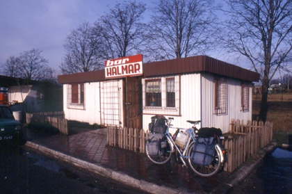 ポーランド 家族経営の小さな宿。日本で言うモーテルとはちょっと違うようだ。 ![]() 東欧に入ってからは食事はレストラン、宿はホテル泊まりと、西側を走っていた時に比べるとウソのように私の走行スタイルも変わってしまった。それにしても西側は高かった。 「西ヨーロッパで同じようなスタイルで走っていたら、世界一周も完走できずにどこかで破産してしまいそう。」 昼食も自炊せずに、小さなレストランに再び立ち寄った。ところがメニューを見てもポーランド語はチンプンカンプン。私が分からないでいると、彼らが次に使ってくる言葉はドイツ語だった。私は6カ国語会話集を開き、「レストランでの会話の部」を見ながら、問い始めた。 「ハーベンズィ…牛肉?豚肉?芋?」(牛肉か豚肉や芋はありますか?) どうやら豚肉か何かよくは分からないが、フライの料理みたいなものがあるらしいので、 「ダスメヒテイヒハーベン」(それをもらいます。) とうなずいた。コーヒーも欲しかったので、 「ミットゥ カフェ ビッテ?」(コーヒーも一緒にお願いできますか?) を付け加えると、 「ヤーヤー。」 と返事が返ってきた。完全には分かっていないのだが、こうした現地調達方式の会話はハラハラドキドキして楽しく、習得も早かった(?)ように思う。少なくとも、「それをもらいます。」(ダスメヒテイッヒハーベン)と言う言い回しは便利で、ウェイターが注文に来たら、人の食べてるのを指差し、 「あれあれ、ダスメヒテイッヒハーベン。」 と言えばそれで事足りてしまった。こんな事をしているから、いつまで経っても私のドイツ語は伸びなかった。情けない。 このとき食べたのは薄っぺらいトンカツにフライドポテト、マヨネーズのかかったキャベツ。価格は250円。量的には半人前。私は大食いなので、結局2皿、3皿と量を食べてしまい高くなってしまう・・・。 このレストランでは30分もゆっくりしただろうか。暖かな部屋ですっかり体も温まったので、再び走行を開始。飛脚号のパンク回数は昨日で96回を数えた。あと4回でパンク回数も100回記念を迎えることになる。ここまで回数を重ねると、 「どっかでパンクしないかな。」 と、パンクするのが半分楽しみにもなってくる。