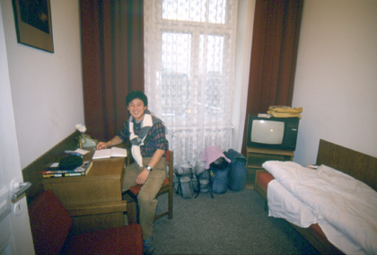 ポーランド 1泊20ドルの高級ホテル(私にとって)。ここに6泊してリフレッシュ。 ![]() フロントのお姉さんに、 「この自転車、どこに置いたらいいですかね?」 と尋ねると、 「ツィマーへ。」(部屋へ) 「え?」 高級そうなきれいなホテルの部屋に、自転車も持ち込んでしまってよいのだろうかと思ったが、良いと言うのだからいいや。私は堂々と飛脚号を部屋に持ち込んだ。部屋にはバスタブがあり、テレビがあり、小さいがベッドもあって、イスと机もあった。当たり前なのだが、プライベートな空間に電気と屋根と水道がある。いつもドミトリーと言うユースホステルの共同ベッドで過ごし、机と電気のない狭いテント内でローソクの光を頼りに日記を書いていた私にとって、まさに憧れの空間。そう言うとちょっと極端だが、せっかく1日に20ドルも払っているのだから、お湯が出なくなるまで、電気がなくなるまで使ってやろうと、などと何かせこい気持ちになってしまった。私は早速蛇口をひねって、バスタブに湯をため風呂に浸かる事にした。 「あーそれにしても何ヶ月振りだろう。風呂に浸かるのは・・・えーっと。」 南米のパラグアイでお世話になった高橋さん宅以来だろうか。湯船に使ったのがいつか思い出せないなんて、よっぽどだな。そんな事を思いながら体をこすっていると、あっという間に大量の垢が水面にプカプカと浮きあがってきた。欧州の人が臭いのはきっと、お風呂に浸からずにシャワーしか浴びていないせいでだろう。 「それにしても日本人っていうのは贅沢だな。毎日こうして風呂に入れるのだからなあ。」 私はいつまでも湯船に浸かっていたい気持ちだった・・・。 翌朝。ホテルの朝食はいったいどんなものかと楽しみにしてレストランに出向いた。 「もしかしてバイキングとか・・・いや、それはないだろうなあ。」 レストランの内装は落ち着いた感じで、優雅なムードが漂っている。しかし出てくる食事は、トーストにスクランブルエッグにジャムにバター。それにコーヒー。私は量が少ないといつもがっかりしてしまう。でもまあ、走りもしないのだからと、そのホテルの雰囲気を楽しみながら朝食をとった。 朝食が済んでから早速机に向かい、日記を読み返し、新聞社への雑記まとめを始めた。 「それにしても机とイスがあると言うのはいいもんだ。」 昼過ぎ、待望の大洗濯を始める。下着以外のほとんどの衣類や自転車のバック、とにかく洗えそうな物は全てバスタブに突っ込んだ。洗剤を入れ、グシャグシャと脚ふみしながら洗うと、 「うわー真っ黒。」 私は大喜びしながら大洗濯した。気分転換したあとは再び雑記まとめ。ある程度をまとめて再び休息。 「それにしても何て快適なホテルだろう。」 風呂があったせいだろうか。今までの走行の疲れがスーっと取れていくような、そんな感じがした。やはりこういう時間の過ごし方は時には必要だ。