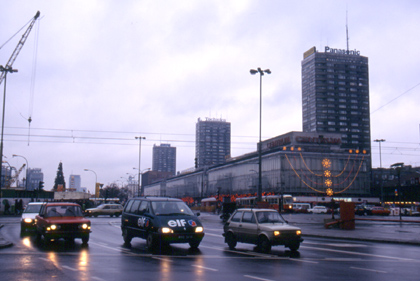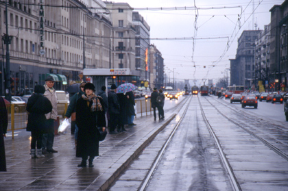 ポーランド ようやくワルシャワ入り。 ![]() ガイドブックがあったので、市内の宿探しも銀行探しも苦にならなかった。大き目のストリートを探し当てて手持ちの地図と照合させると、簡単に見つけることができた。旧東ドイツ、そしてここポーランドの首都の情景がどこか似ていた。広い道に同じような形をした造りのビル。典型的な東側の街並は、ワルシャワにも存在していたのだ。