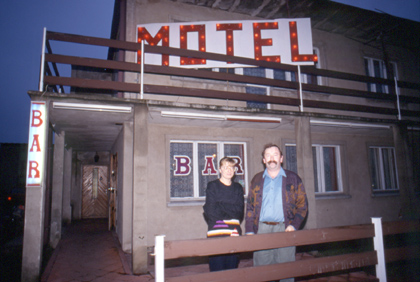 ポーランド 意外に立派で大きい建物。ここはレストラン。 ![]() 昨日のレストランもこの日に寄ったレストランも、メニューの掲示金額と実際に払う金額が違っていた。単にぼられているのか、それともインフレのせいで前の安値の金額を変えていないのか、どちらかは分からない。店内で働いている人は悪そうには見えないのでぼられている心配はなさそうなのだが。私は言われたままの金額を素直に支払った。 午後の4時。周囲もそろそろ暗くなり始めてきており、焦って宿探しを始めた。せっかく物価の安い国にいるのだから野宿は避けたい。今日もまともな宿泊場所を見つけようと、ハイウェイを注意しながら走っていた。そこに一軒のモーテルを見つけたので、早速立ち寄ってみる。 「あの、部屋はありますか?」 私は例によってたどたどしいドイツ語で泊まれるか聞いてみた。すると、 「ヤーヤー。」(はい。) と言ってくれたので一安心。間違っても高級ホテルとは言えないが、アットホームな感じがしていい。
